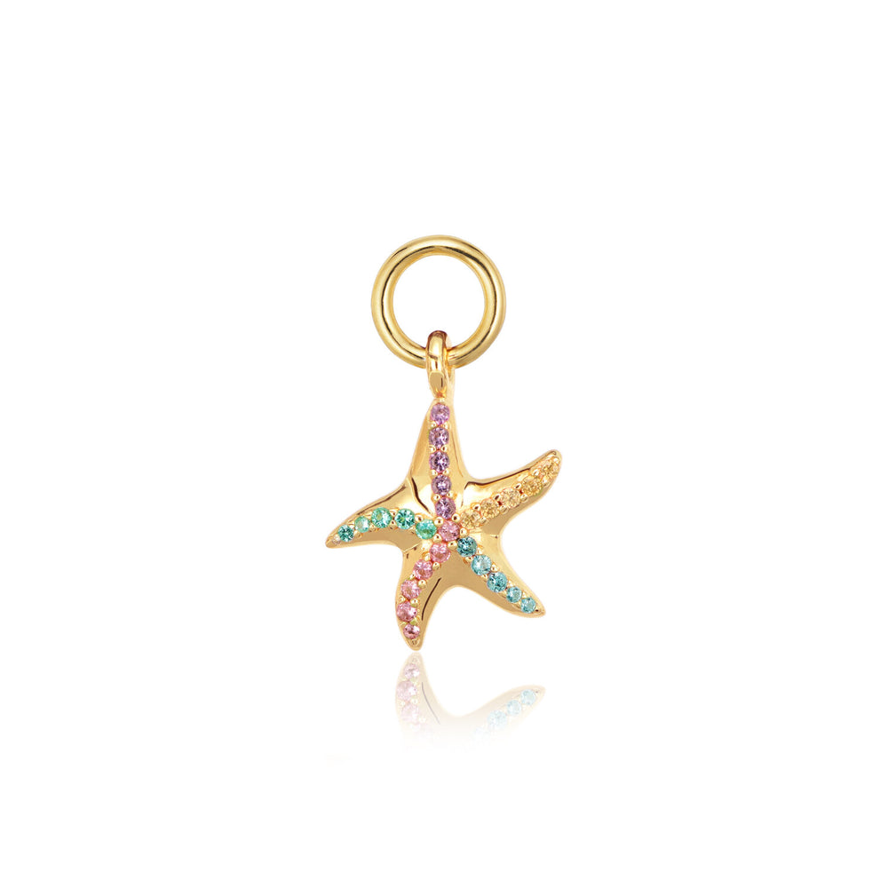 Seesterne-Charm aus 18 karätig vergoldet 925 Sterlingsilber mit polierter Oberfläche und handbesetzt mit Mehrfarbige Zirkonia im Facettenschliff.