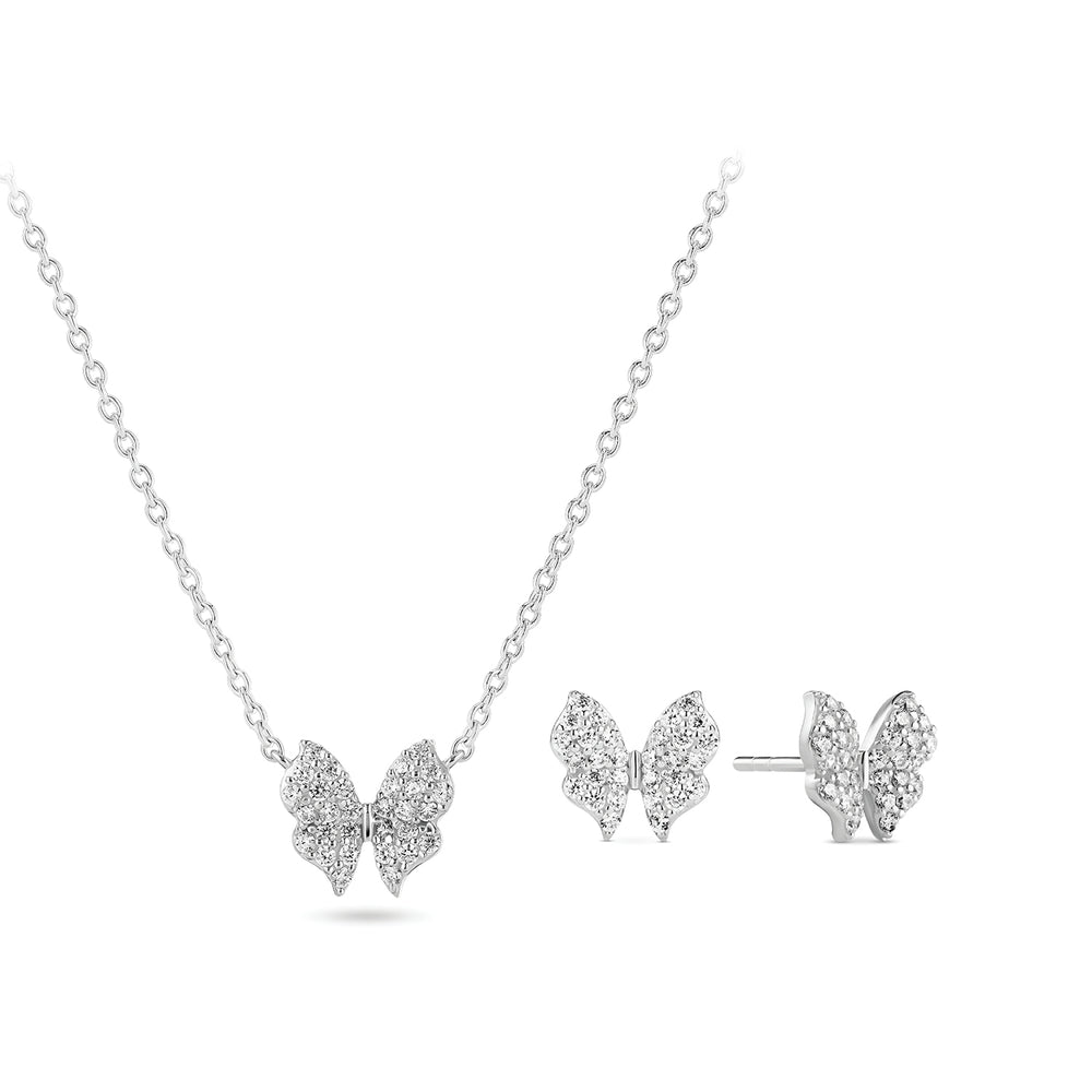 Set aus 925 Sterling Silber mit polierter Oberfläche und handgefassten weißen Zirkonen.