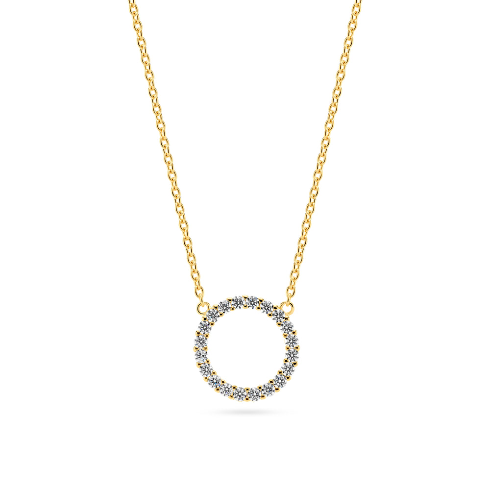 Halskette aus 925 Sterlingsilber / 18Kvergoldet mit glänzed polierter Oberfläche, facettengeschliffenen weißen Zirkonia.