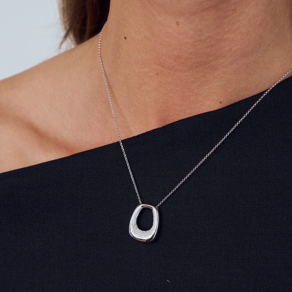 Halskette aus rhodiniertem 925 Sterling Silber mit polierter Oberfläche und handgefassten, facettierten weißen Zirkonia-Steinen.