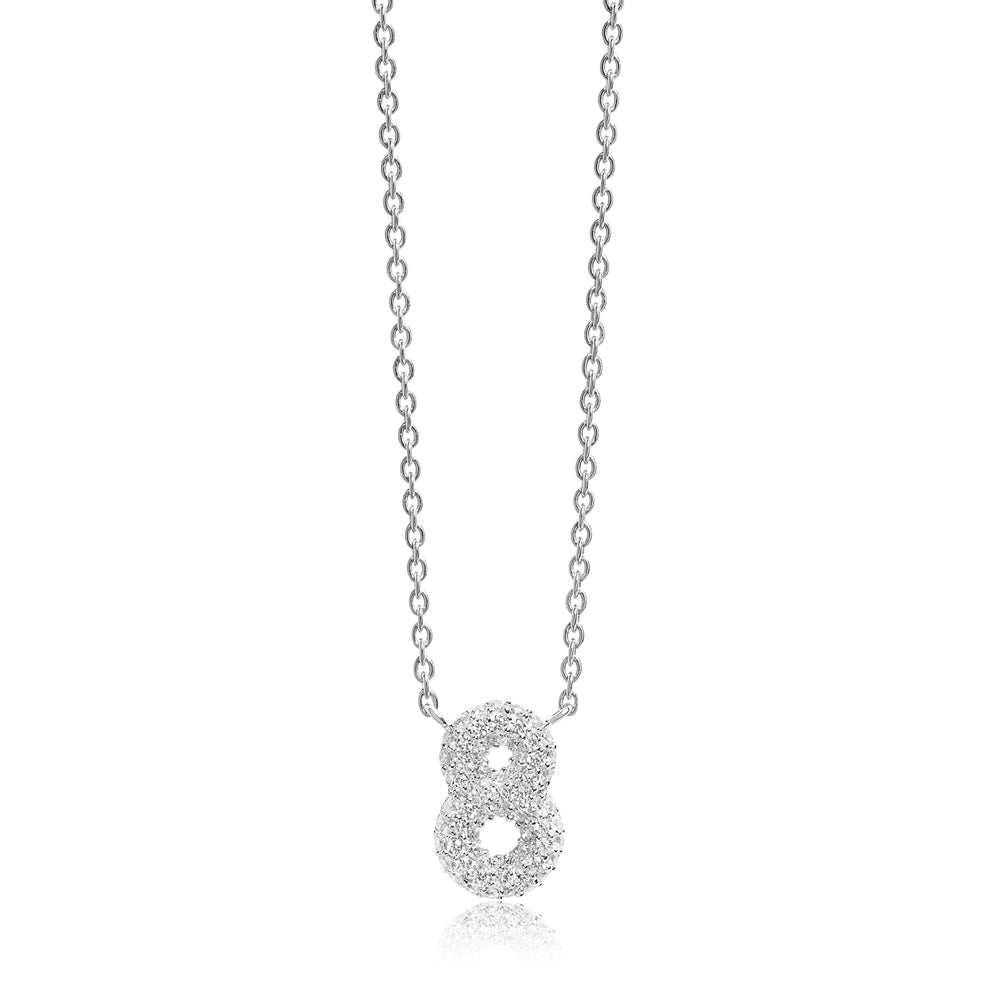 Halskette aus rhodiniertem Sterlingsilber 925 mit glänzed polierter Oberfläche, facettengeschliffenen weißen Zirkonia.