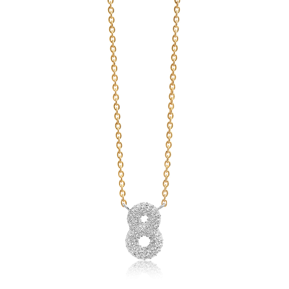 Halskette aus 925 Sterlingsilber / 18Kvergoldet mit glänzed polierter Oberfläche, facettengeschliffenen weißen Zirkonia.