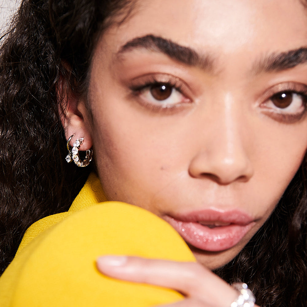 Ohrringe aus 925 Sterlingsilber / 18K vergoldet mit glänzend polierter Oberfläche und facettengeschliffenen weißen Zirkonias.