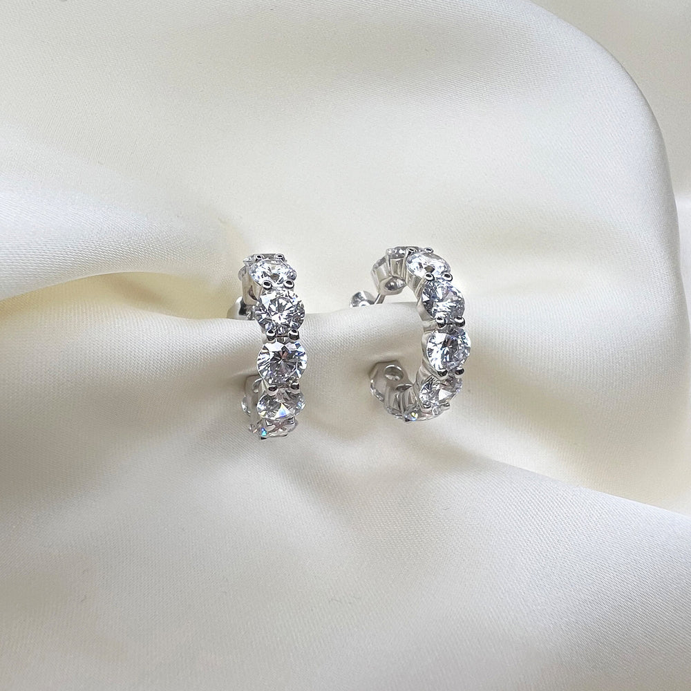 Ohrringe aus 925 Sterlingsilber mit glänzend polierter Oberfläche und facettengeschliffenen weißen Zirkonias.