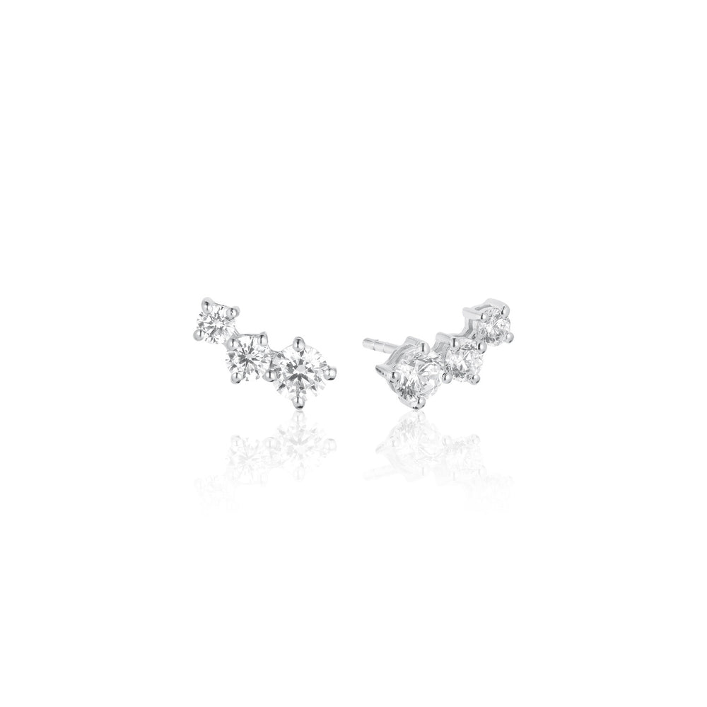 Ohrringe aus 925 Sterlingsilber mit glänzend polierter Oberfläche und facettengeschliffenen weißen Zirkonias.