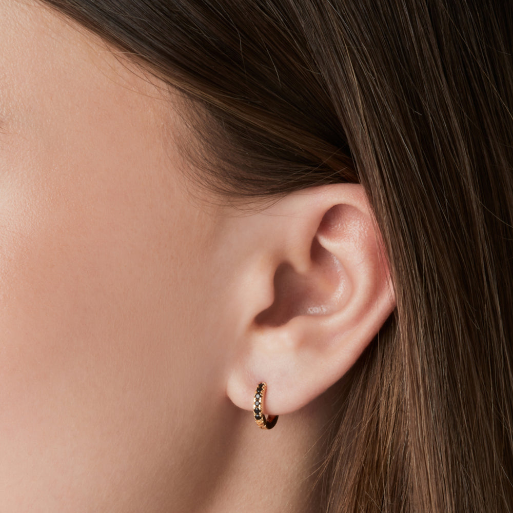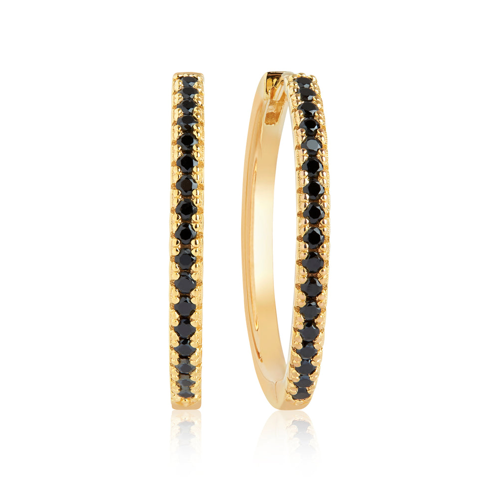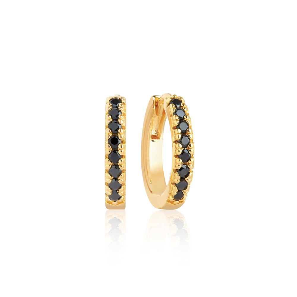 Ohrringe aus 925 Sterlingsilber / 18Kvergoldet mit glänzed polierter Oberfläche, facettengeschliffenen schwarzen Zirkonia.