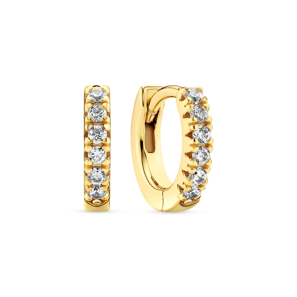 Ohrringe aus 925 Sterlingsilber / 18Kvergoldet mit glänzed polierter Oberfläche, facettengeschliffenen weißen Zirkonia.