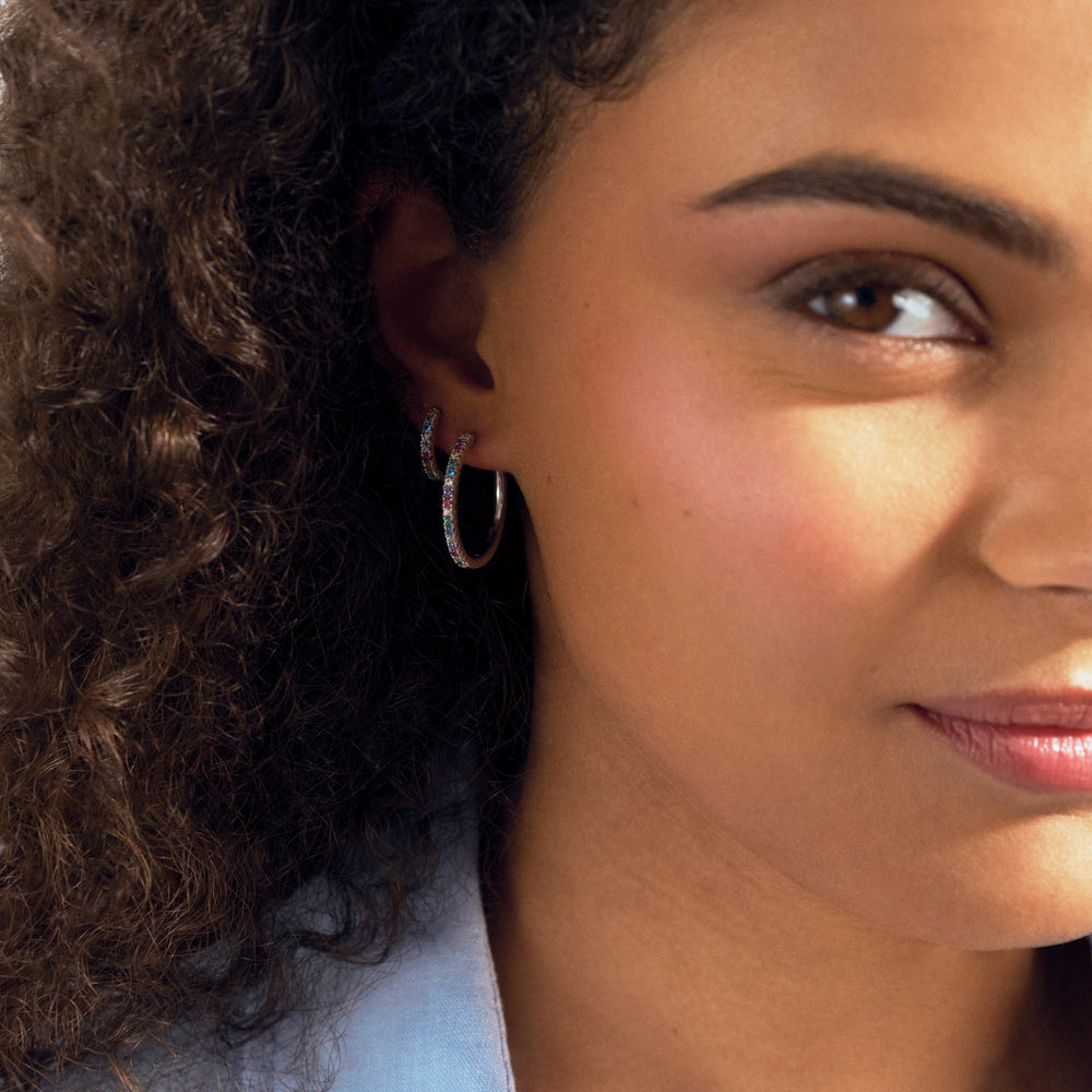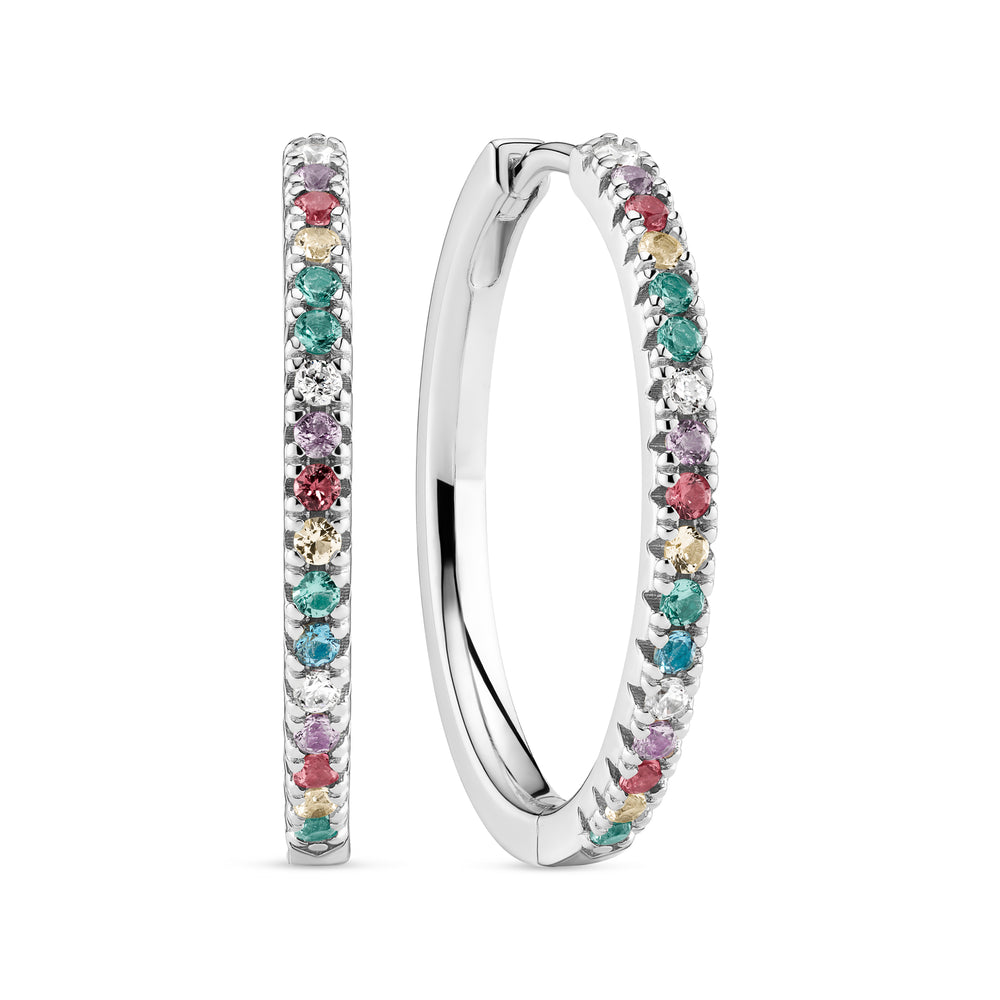 Ohrringe aus rhodiniertem Sterlingsilber 925 mit glänzed polierter Oberfläche, facettengeschliffenen bunten Zirkonia.