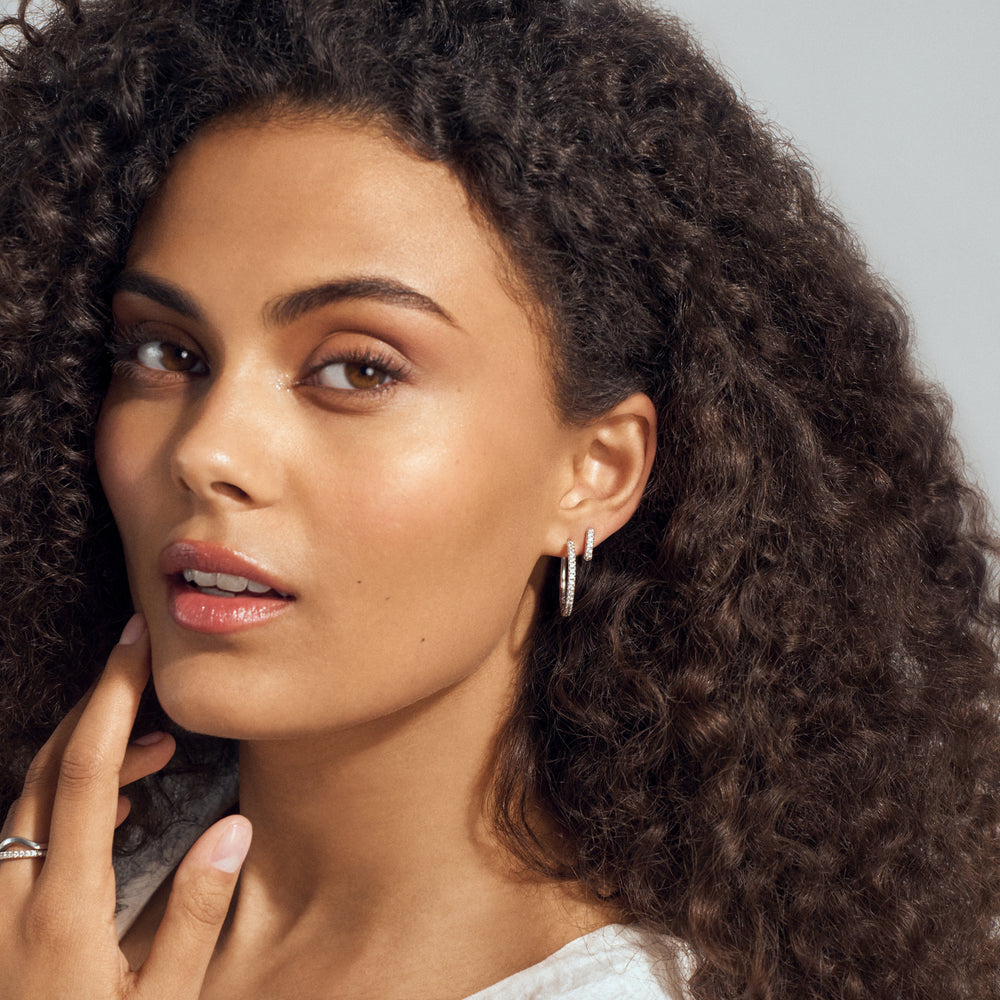 Ohrringe aus rhodiniertem Sterlingsilber 925 mit glänzed polierter Oberfläche, facettengeschliffenen weiße Zirkonia.