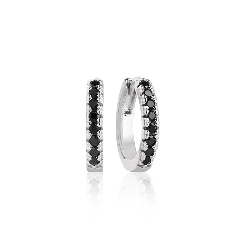 Ohrringe aus rhodiniertem Sterlingsilber 925 mit glänzed polierter Oberfläche, facettengeschliffenen schwarzen Zirkonia.