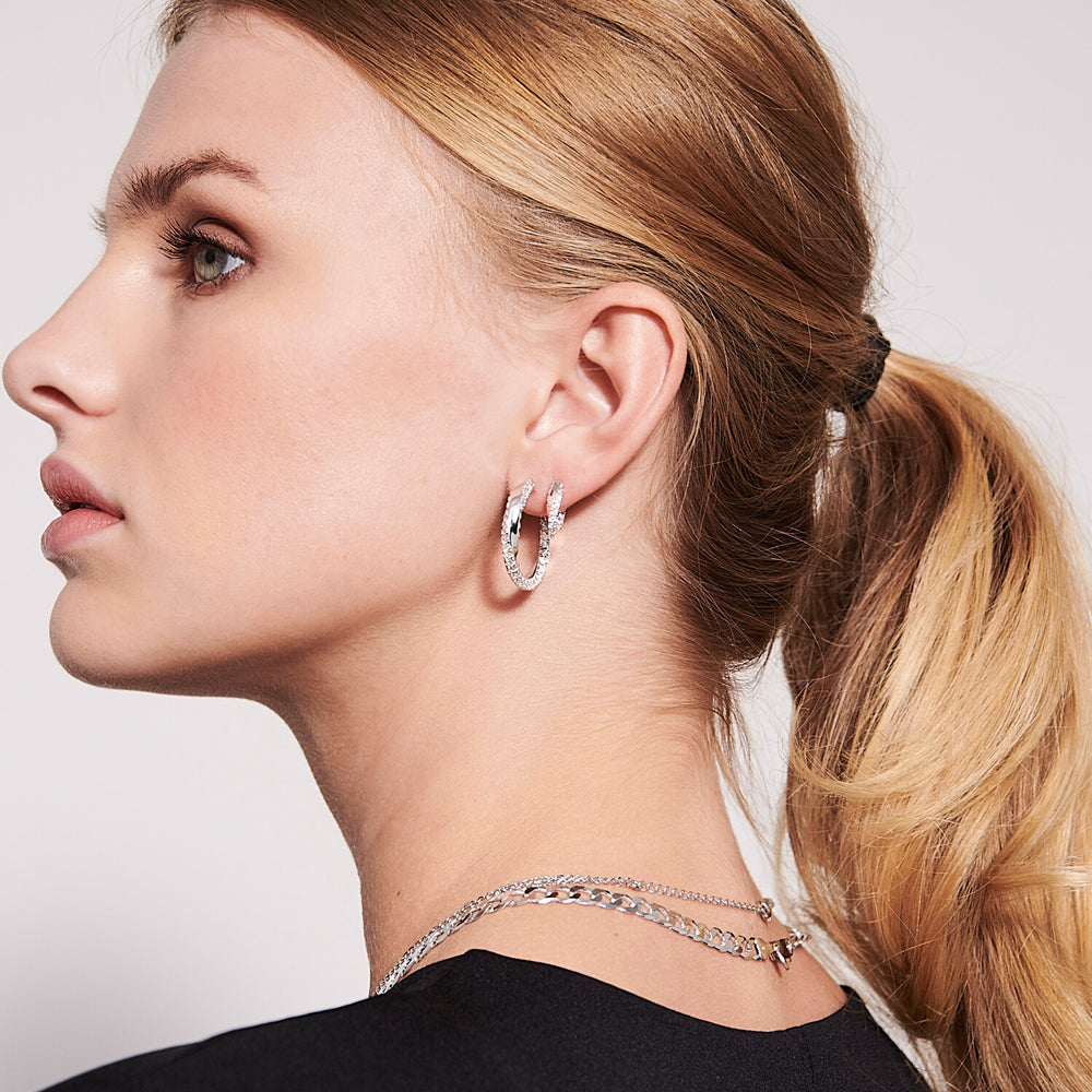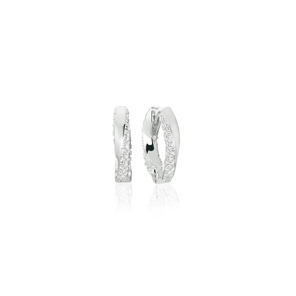 Ohrringe aus rhodiniertem Sterlingsilber 925 mit glänzed polierter Oberfläche, facettengeschliffenen weißen Zirkonia.