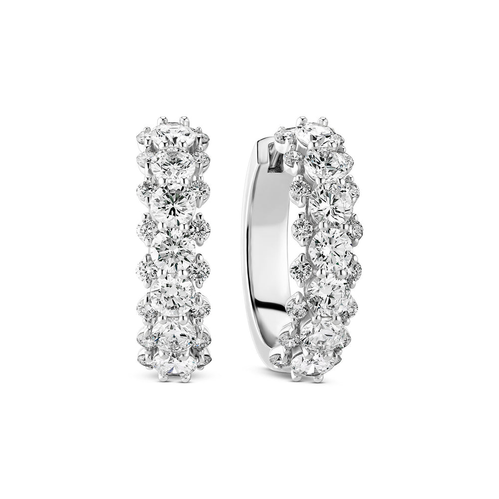 Ohrring aus 14k Weißgold mit polierter Oberfläche, gefasst mit 2.46 ct runden brillantschliffenen lab-grown diamanten. Die Diamanten haben die Farbe TW G-H und die Reinheit VS, was für ein strahlendes Funkeln sorgt.