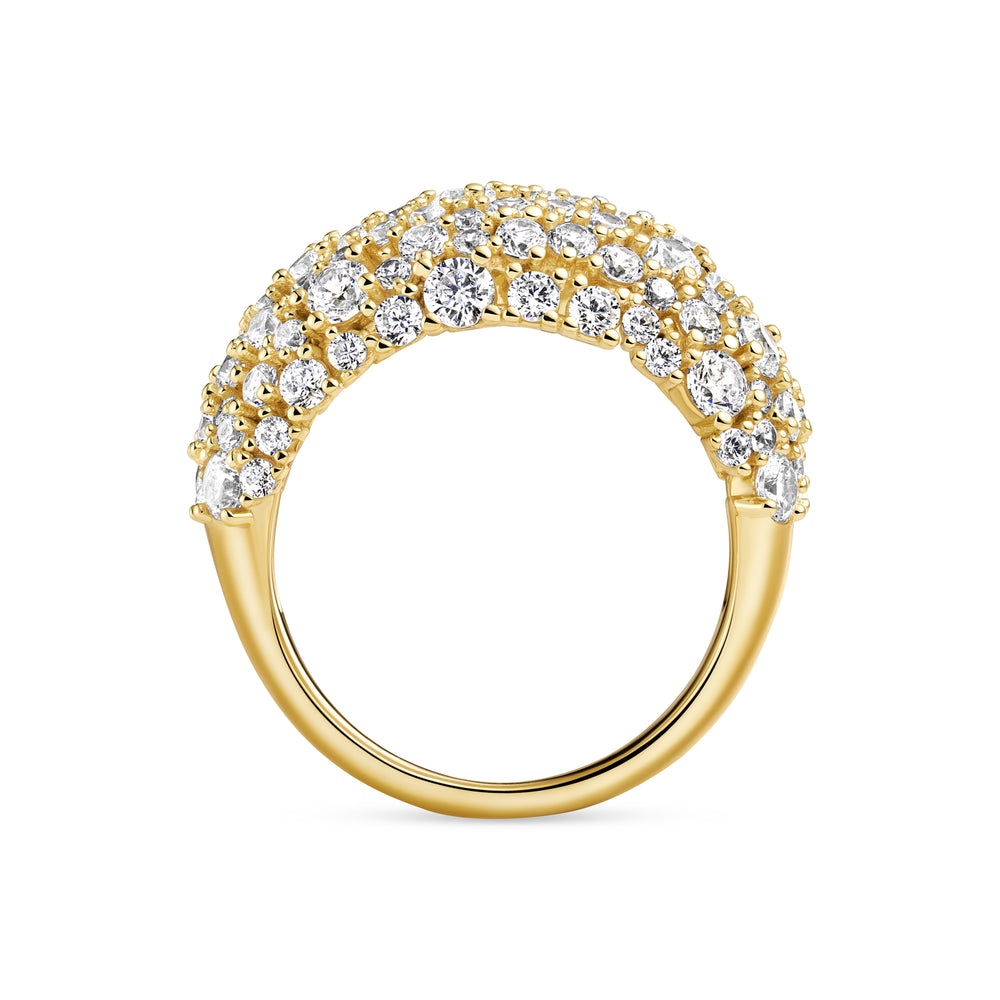 Ring aus 18 karat vergoldetem 925 Sterling Silber mit polierter Oberfläche und handgefassten weißen Zirkonen.